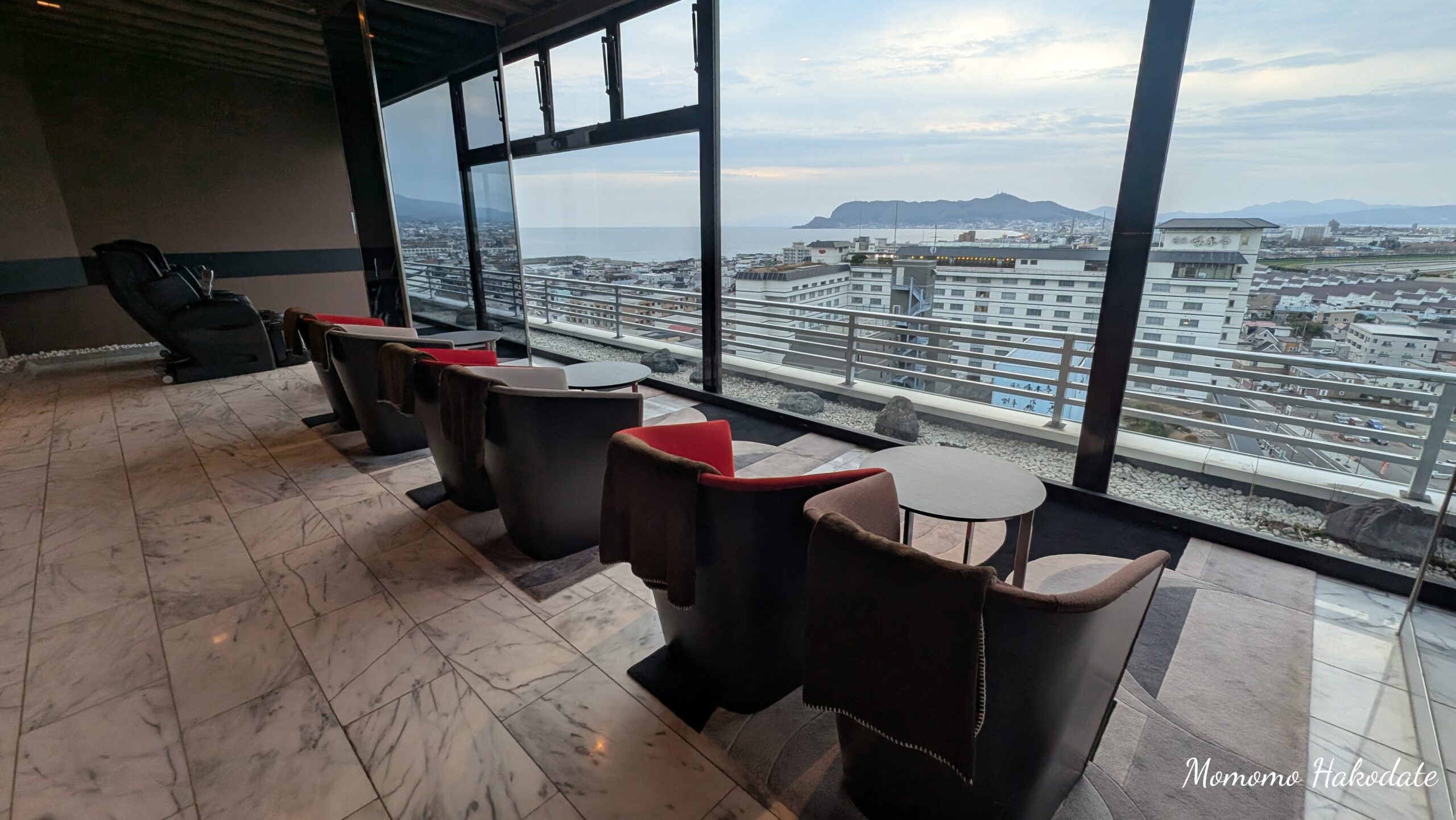 函館山、津軽海峡、街並みを眺めながらの贅沢な時間が流れます。