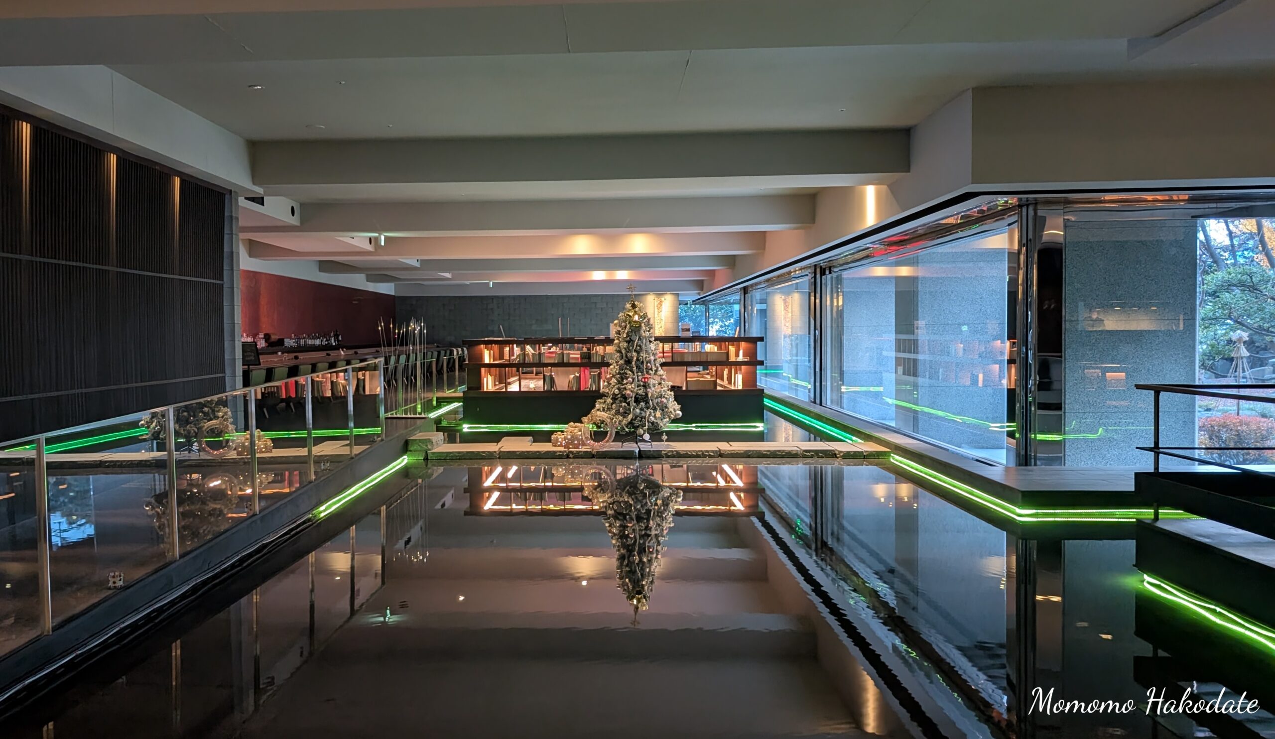 望楼NOGUCHI函館に足を踏み入れると、広々としたロビーに流れる水の音が心地よく、すぐに心が安らぎます。