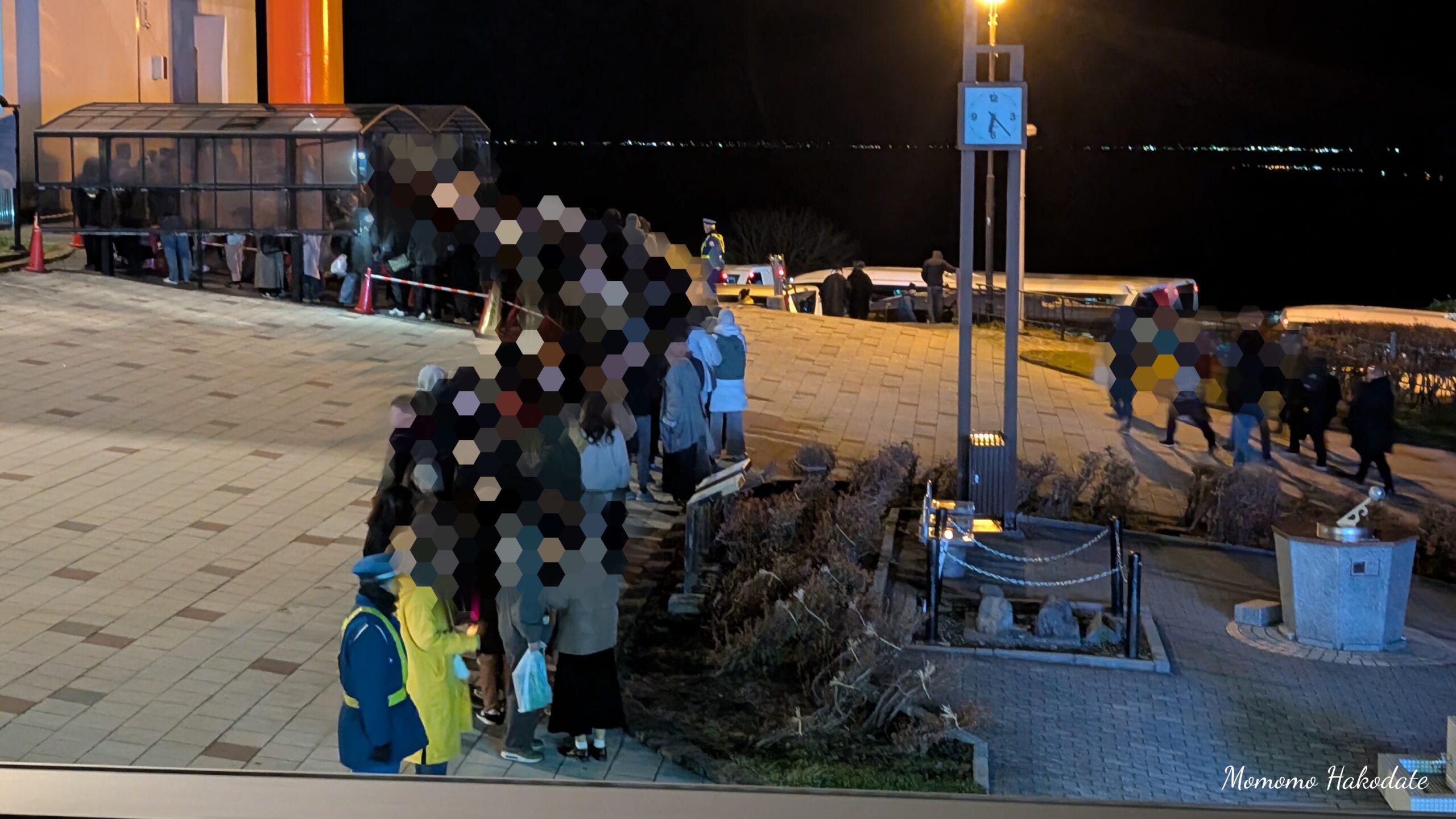通常、夜景観光の各アクセスの混雑は凄まじく、路線バスも大行列になりますし、路面電車て最寄り駅まで行っても、かなりきつい坂を登らねばなりません。