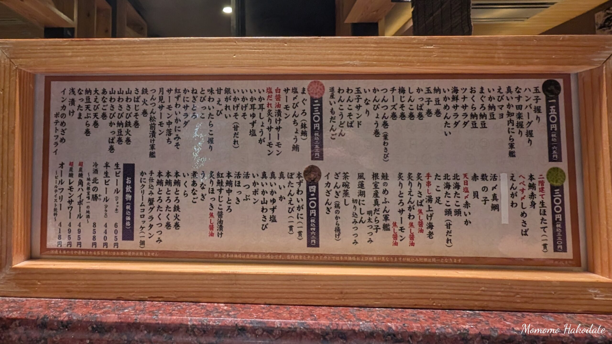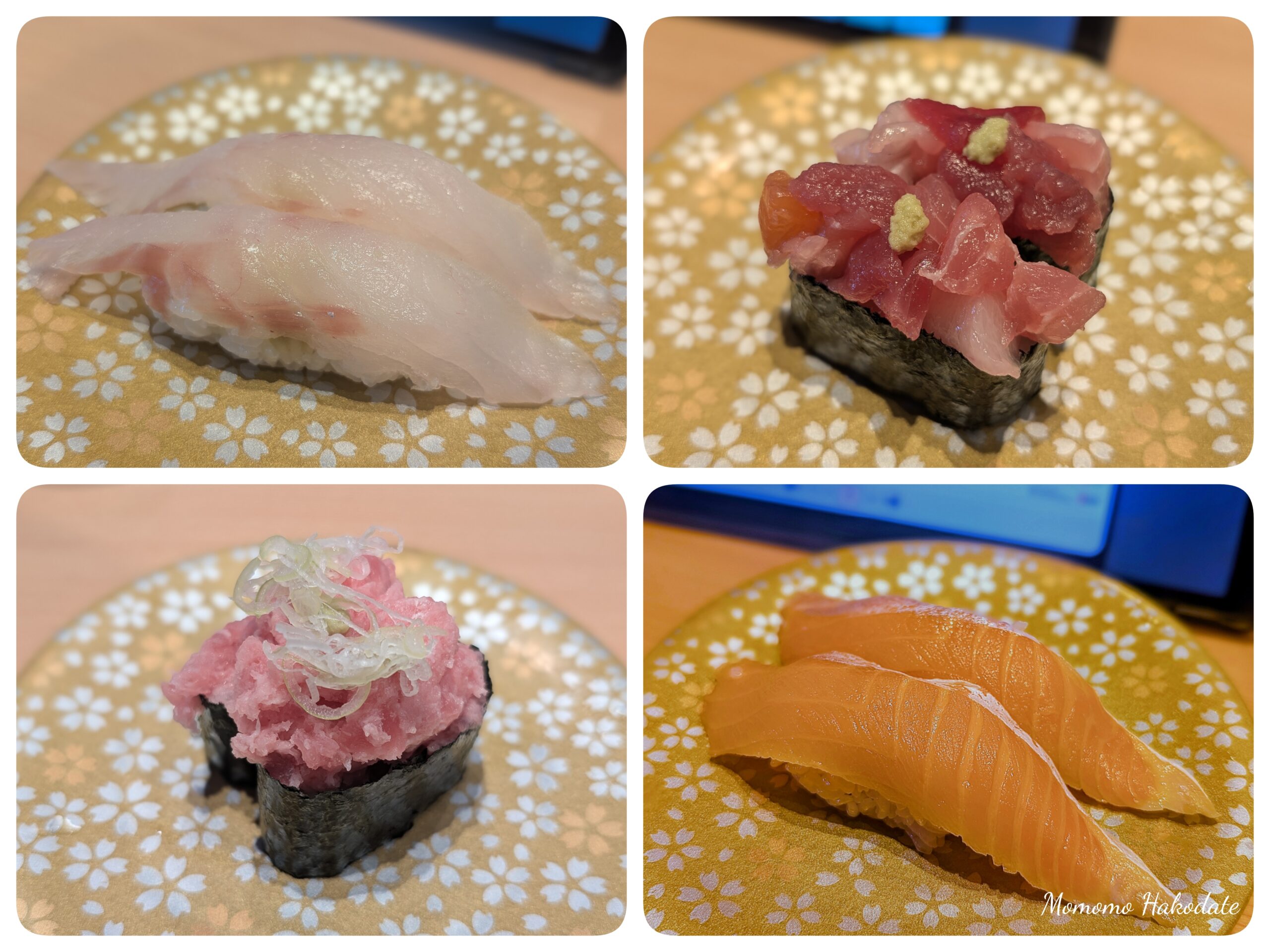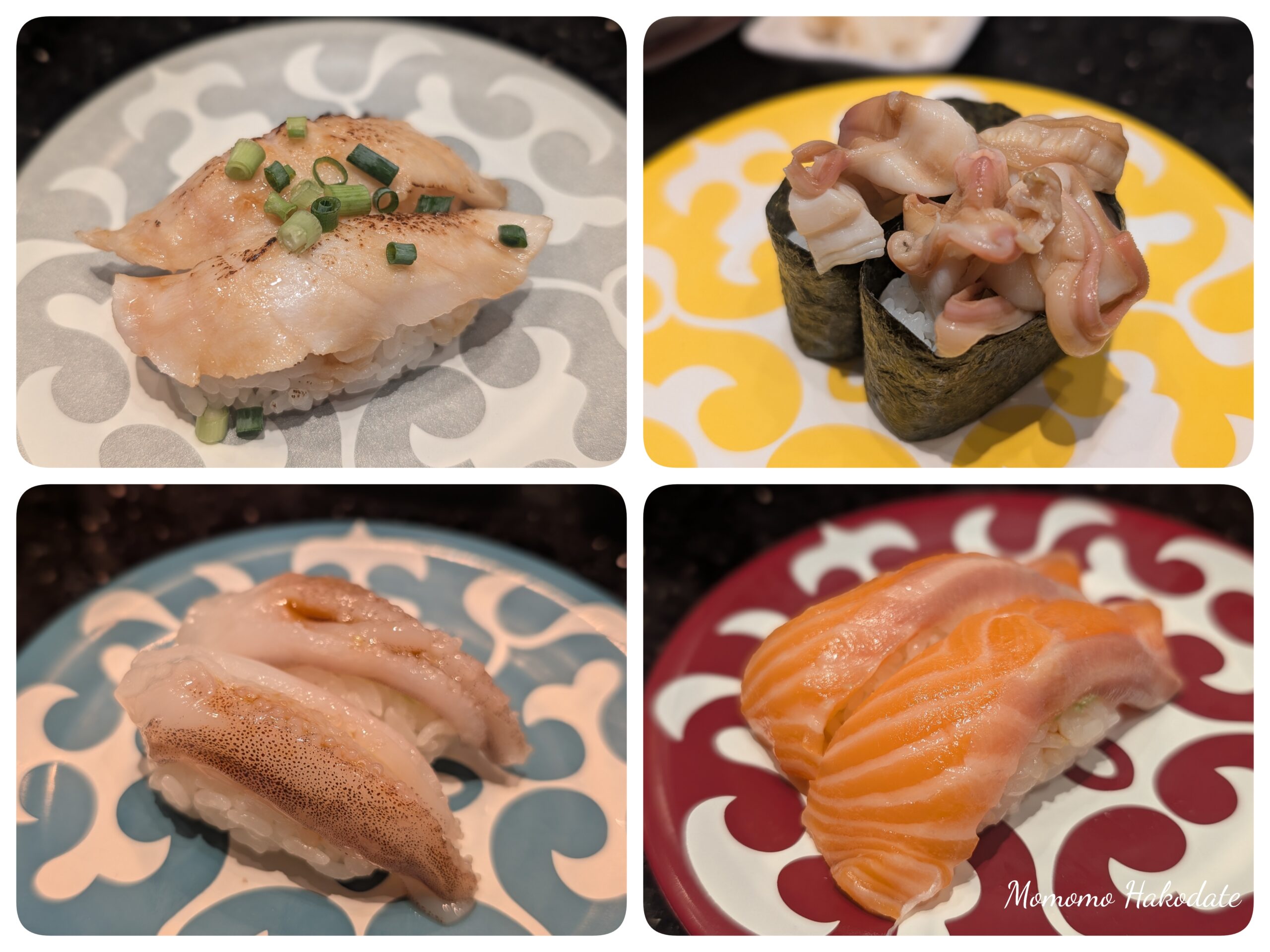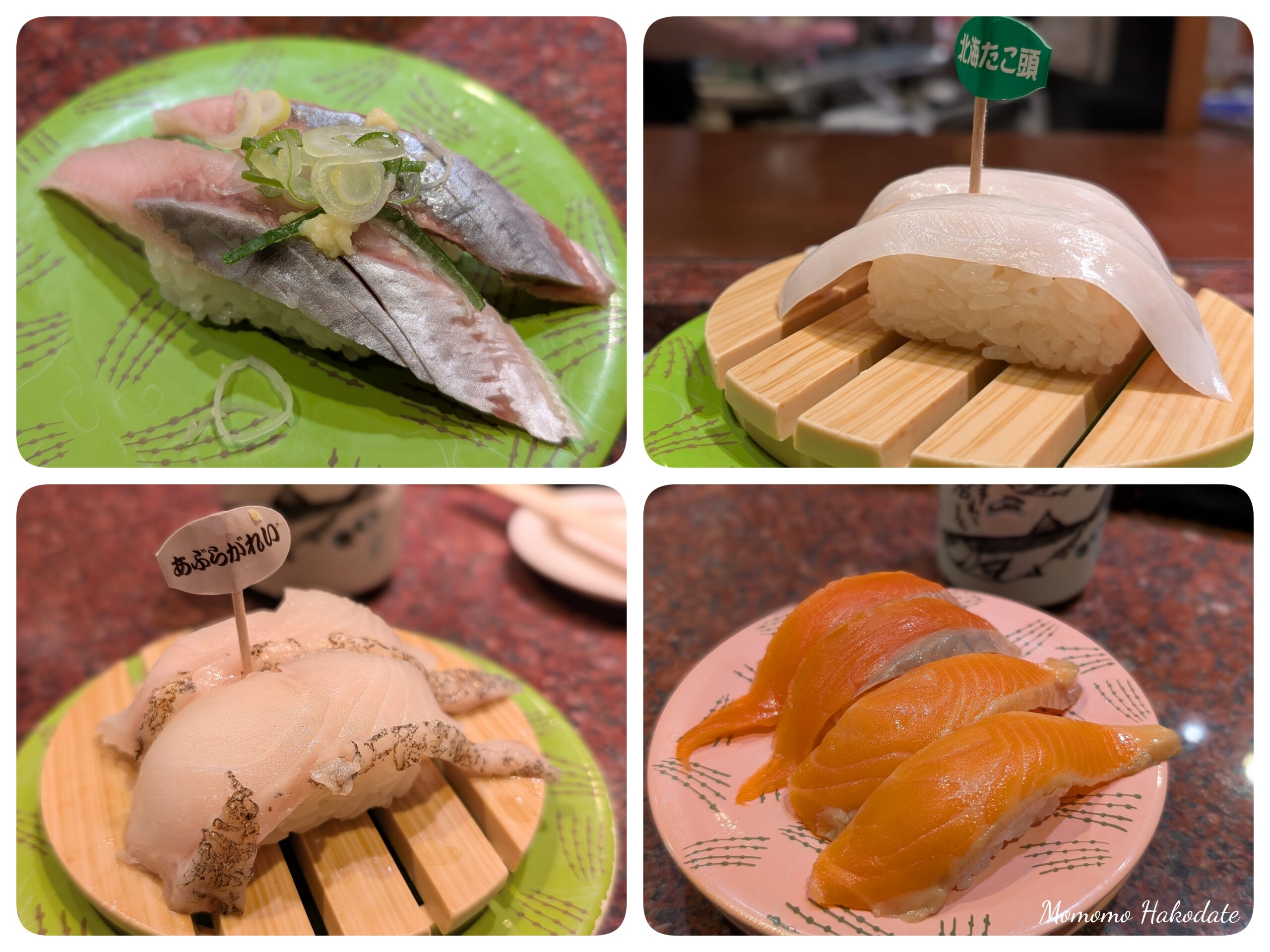 新鮮な地元のネタはもちろん、イカゲソやイカミミ、ホッキひもなど通好みのラインナップも多い印象。定番のサーモンも脂がのって最高でした。